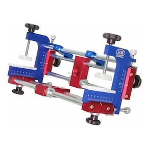 CARACTERÍSTICAS: Gabarito para rasgo de fechadura com furadeira manual para portas de madeira. Este gabarito proporciona um acabamento de alta precisão e conta com um exclusivo sistema de duas Guias lineares para fresas de 15mm e 20mm. O Guia frontal usinagem do rasgo da fechadura e o Guia lateral para usinagem da maçaneta e buraco do miolo da chave.