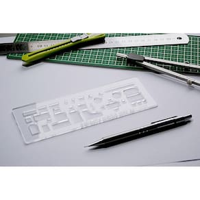 Gabarito de móveis e sanitários mod a4. Escala 1:100 Características : Espessura : 2mm padrão desenho técnico Adicionas : sem chanfro e com marcações Marca : fenix