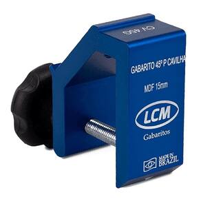 Gabarito Mini Jig Cavilhas 45 Graus 8mm para Chapas 15mm CV45G-15 LCM Gabarito Mini Jig 8mm para Madeira 15mm 45 Graus CV45G-15 LCM. Para gabaritar cavilhas em peças com cortes idênticos de 45 graus, dispensando o uso de fita de borda - Marca: LCM - Referência: CV45G-15 - Gabarito ideal para efetuar as marcações de furação para montagem de moveis planejados, utilizando o dispositivo cavilha para recortes de peças de mesma espessuras em corte de 45 graus - Para madeiras e chapas com espessura de 15mm - Com este gabarito e possível fazer o encaixe e travamento de cantos com o uso de cavilha em peças com cortes idênticos de 45 graus, dispensando o uso de fita de borda - A LCM oferece um gabarito de 45graus completo, diferenciado e de alto padrão em qualidade e acabamento, um produto que busca inovar e sanar necessidades de profissionais e hobbystas. - Fabricado no Brasil - Peso: 205g - : 90 dias Itens inclusos: - 1 Bloco em alumínio anodizado - 1 Manipulo para fixação - 1 Bucha de inox recartilhada de 8mm Ean: 7734625994132