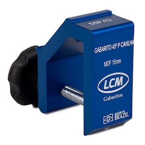 Gabarito Mini Jig Cavilhas 45 Graus 8mm para Chapas 15mm CV45G-15 LCM Gabarito Mini Jig 8mm para Madeira 15mm 45 Graus CV45G-15 LCM. Para gabaritar cavilhas em peças com cortes idênticos de 45 graus, dispensando o uso de fita de borda - Marca: LCM - Referência: CV45G-15 - Gabarito ideal para efetuar as marcações de furação para montagem de moveis planejados, utilizando o dispositivo cavilha para recortes de peças de mesma espessuras em corte de 45 graus - Para madeiras e chapas com espessura de 15mm - Com este gabarito e possível fazer o encaixe e travamento de cantos com o uso de cavilha em peças com cortes idênticos de 45 graus, dispensando o uso de fita de borda - A LCM oferece um gabarito de 45graus completo, diferenciado e de alto padrão em qualidade e acabamento, um produto que busca inovar e sanar necessidades de profissionais e hobbystas. - Fabricado no Brasil - Peso: 205g - : 90 dias Itens inclusos: - 1 Bloco em alumínio anodizado - 1 Manipulo para fixação - 1 Bucha de inox recartilhada de 8mm Marca: Não Informado