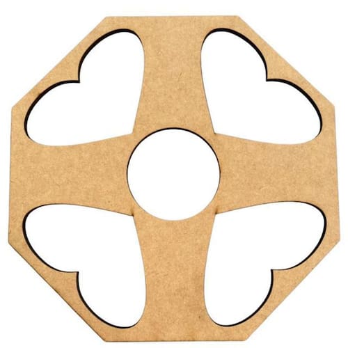 Gabarito Molde Coração Mdf Cru De 6Mm Descrição: - Molde para fabricação de petisqueira em formato de coração; - Produto feito em MDF Cru com 6mm de espessura; - O MDF é cortado a laser, garantindo acabamento perfeito da peça. Dimensão: - Peça octogonal: 28cm de diâmetro Garantimos que seu produto chegará livre de defeitos e realizamos a troca em caso de qualquer dano durante transporte.
