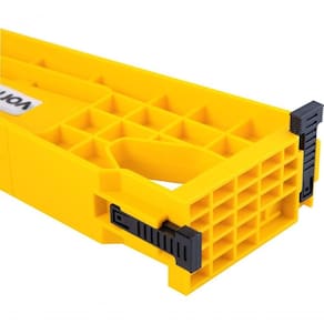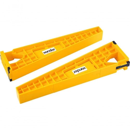 Indicado para auxiliar a instalação de corrediças em móveis. Utilizar um grampo de aperto ou alicate de pressão (não acompanha o produto) para auxiliar a fixação do gabarito, impossibilitando a movimentação durante o trabalho. Possui 355 mm de comprimento e guias auxiliares.