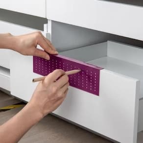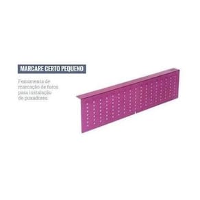 Quer marcar certo o puxador no móvel, sem medo de errar Chegou o Marcare Certo Pequeno. Nunca foi tão fácil instalar um puxador. Posicionador de furos para instalação de puxadores para moveis. Com peças móveis da guia para a localização dos furos torna a operação rápida e simples. A ferramenta mais rápida, mais precisa do mercado, fácil de usar e fácil de configurar para qualquer comprimento. Ajuste rápido e fácil - Um modelo de uso múltiplo para instalação precisa de puxadores em gavetas e portas. Economize tempo e dinheiro - Este gabarito um dia inteiro de medição de uma forma simples, fácil e rápida. Você só precisa posicionar, o Marcare no móvel, sem medições adicionais e sem medo de errar. Pequeno e Portátil - Facilitando o transporte e armazenagem. Um bom acessório de ajuda para marcenaria ou bricolagem. O ajudante para seu trabalho - Com um design inteligente ajuda a eliminar erros de furação. Marque Certo, marque fácil - Marcare Certo para puxadores.Informações técnicas:Material: PlásticoColor: RoxaDiâmetro do furo: 4 mmDistancia de furos na horizontal: 32mmDistancia dos furos na vertical: 8mm