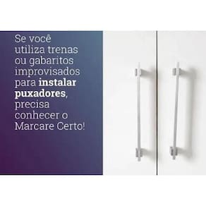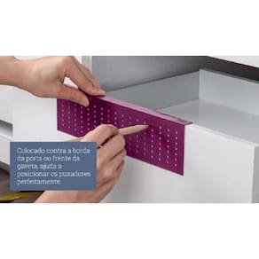 Quer marcar certo o puxador no móvel, sem medo de errar Chegou o Marcare Certo Pequeno. Nunca foi tão fácil instalar um puxador. Posicionador de furos para instalação de puxadores para moveis. Com peças móveis da guia para a localização dos furos torna a operação rápida e simples. A ferramenta mais rápida, mais precisa do mercado, fácil de usar e fácil de configurar para qualquer comprimento. Ajuste rápido e fácil - Um modelo de uso múltiplo para instalação precisa de puxadores em gavetas e portas. Economize tempo e dinheiro - Este gabarito um dia inteiro de medição de uma forma simples, fácil e rápida. Você só precisa posicionar, o Marcare no móvel, sem medições adicionais e sem medo de errar. Pequeno e Portátil - Facilitando o transporte e armazenagem. Um bom acessório de ajuda para marcenaria ou bricolagem. O ajudante para seu trabalho - Com um design inteligente ajuda a eliminar erros de furação. Marque Certo, marque fácil - Marcare Certo para puxadores.Informações técnicas:Material: PlásticoColor: RoxaDiâmetro do furo: 4 mmDistancia de furos na horizontal: 32mmDistancia dos furos na vertical: 8mm
