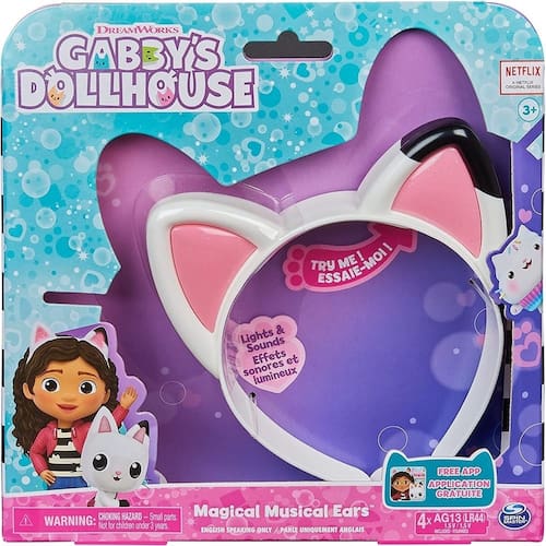 Vista-se como Gabby da Casa de Bonecas de Gabby com as orelhas musicais mágicas Essas orelhas de gato interativas se parecem com as que Gabby usa no programa. Deslize as Orelhas Musicais Mágicas e prepare-se para a aventura Com luzes e mais de 10 sons, frases e músicas, você terá muita diversão Basta pressionar uma das orelhas rosa cintilantes para ativá-las e, em seguida, beliscar a orelha esquerda para ouvir as frases de Gabby. Para ativar os efeitos sonoros e as músicas do show, aperte a orelha direita e dê uma festa enquanto a música toca.
