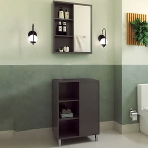 MDPO Conjunto CJ7250 da Milani Store é a solução para transformar seu banheiro com estilo e funcionalidade. A Espelheira conta com uma porta de correr, espelho integrado e 6 nichos, oferecendo organização e elegância ao ambiente. Já o Gabinete também possui uma porta de correr, oferece espaço interno e design moderno, garantindo praticidade. Este conjunto é ideal para otimizar e valorizar o seu ambiente. Este móvel chegará na sua casa separado em 02 volumes.