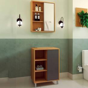 O Conjunto CJ7250 da Milani Store é a solução para transformar seu banheiro com estilo e funcionalidade. A Espelheira conta com uma porta de correr, espelho integrado e 6 nichos, oferecendo organização e elegância ao ambiente. Já o Gabinete também possui uma porta de correr, oferece espaço interno e design moderno, garantindo praticidade. Este conjunto é ideal para otimizar e valorizar o seu ambiente. Este móvel chegará na sua casa separado em 02 volumes.