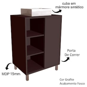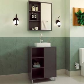 Cor: Multicolorido | Tonalidade: Multicolorido | Produto: Gabinete com cuba e Espelheira | Material: Madeira | Tamanho do Móvel: Médio: de 40cm a 80cm de largura Cor: Grafite