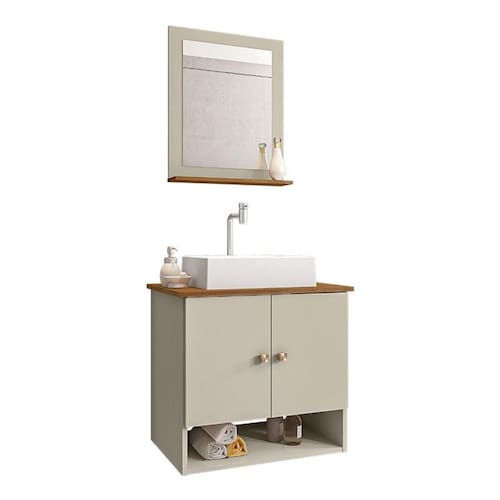 Material da espelheira: MDP de 12 mm no painel e 15 mm na prateleira com espelho de 03 mm de espessura;