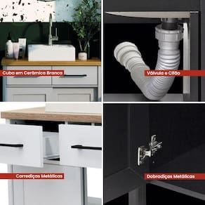 - Cuba em cerâmica branca que suporta até 20 kg.