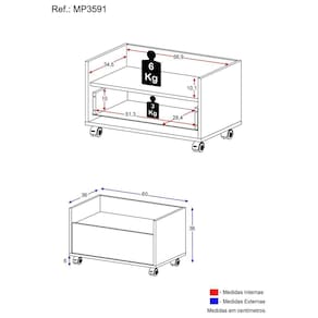 Dimensões do produto montado: Altura: 36cm | Largura: 60cm | Profundidade: 36cm *Você pode consultar as medidas internas na imagem técnica do produto.