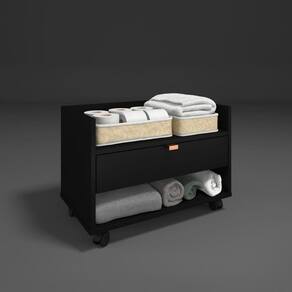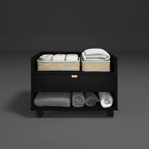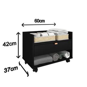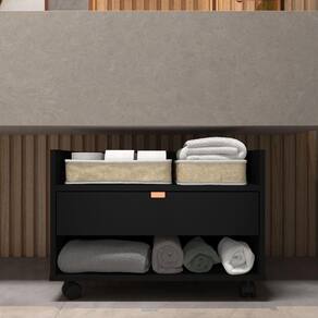 Gabinete Armário Para Banheiro 60Cm De Madeira Com Rodinhas Gaveta Nicho Preto Com Cobre O Gabinete Armário Banheiro 60 cm com Rodízios Alexandre é a solução para você que não possui muito espaço no banheiro. Garante maior durabilidade e facilidade na limpeza, possui 1 gaveta com amplo espaço interno e corrediças metálicas que proporcionam mais leveza no manuseio. Os rodízios facilitam a movimentação do móvel na hora da limpeza. Seu design clean permite que ele seja utilizado em diferentes ambientes, adaptando-se conforme sua necessidade.Gaveteiro Alexandre- Inteiro de MDP, super resistente e durável- Com rodinhas inclusas- Ideal para banheiros, escritórios, e lavabos.- Dimensões completas nas imagens