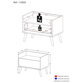 Dimensões do produto montado: Altura: 47cm | Largura: 60cm | Profundidade: 36cm *Você pode consultar as medidas internas na imagem técnica do produto.