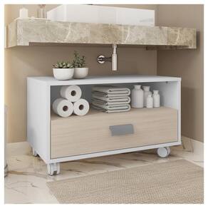 O Carrinho Towel o movél ideal para seu banheiro, acompanhado de um design unico e moderno. O Carrinho Towel contém rodizios para melhor deslocamento um amplo tampo, nicho e gaveta. Feito em MDP BP e HDF possui maior resistência e durabilidade ao móvel.Dimensões do produto:Altura: 40 cm Largura: 68 cm Profundidade: 38 cm Peso: 14,68 kg- Possui 1 Tampo- Possui 1 Nicho - Possui 1 Gaveta - Possui 1 Puxador- Possui 4 Rodizios- Acompanha o manual de montagem- Estrutura em MDP BP de 15mm espessura e HDF de 3mm de espessura.- Tonalidade do produto: Casa Blanca /Branco TxPeso suportado:- Tampo 5kg- Nicho 3 kg- Gaveta 5 kg- Garantia 90 dias contra defeito de fabricação- Este móvel chegará em sua casa separado em 1 volume- Dimensões da embalagem:Altura: 9 cm Largura: 84,5 cm Comprimento: 39,2 cmRecomendações de limpeza:- Limpar com pano macio, seco ou úmido, sem uso de produtos abrasivos. Pois, podem trazer danos ao produto.Produto segue desmontado, montagem por conta do comprador.Imagens do produto são meramente ilustrativas.