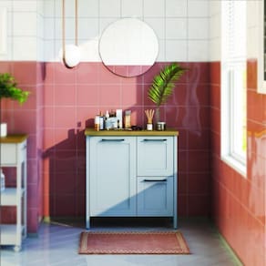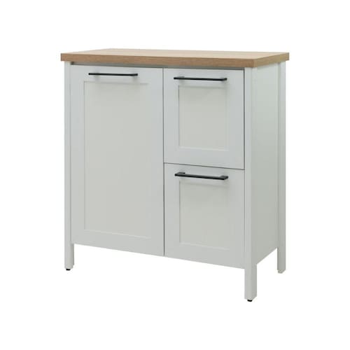 O gabinete de banheiro possui um tampo resistente e durável, ideal para apoiar seus itens essenciais de banheiro. Sua superfície é fácil de limpar, mantendo seu banheiro sempre impecável.
