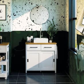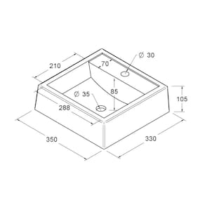 - Cuba em cerâmica branca que suporta até 20 kg.