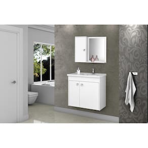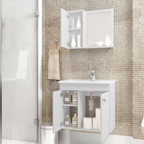 Modelo: MuniqueMaterial do móvel: MDF e lavatório em mármore sintéticoAcabamento: Pintura UV Altura do gabinete: 54 cmLargura do gabinete: 56 cmProfundidade do gabinete: 29,6 cmQuantidade de gavetas: Não se aplicaQuantidade de portas: 02Material das dobradiças: MetálicasCom puxador: SimMaterial do puxador: Plástico cromadoQuantidade de prateleiras: Não se aplicaInclui espelheira: SimAltura da espelheira: 46 cmLargura da espelheira: 57,5 cmProfundidade da espelheira: 10 cmQuantidade de portas: 01Material das dobradiças: MetálicasQuantidade de prateleiras: 01Inclui torneira: NãoInclui Válvula: NãoInclui kit hidráulico: NãoRequer montagem: Sim (kit montagem incluso)Embalagem do envio: Papelão e plásticoInformações adicionais:- Os objetos que ambientam as fotos não acompanham o produto;- O produto será entregue desmontado;- É de inteira responsabilidade do cliente a montagem do produto e/ou instalação, custos de transporte por escadas e/ou elevadores, guincho ou içamento, assim como possíveis irregularidades provenientes de manuseio inadequado;- Embora o produto acompanhe o manual de montagem, verifique a complexidade antes de decidir montá-lo sozinho, recomendamos que contrate um profissional de sua confiança;- Fique atento, nossas cores podem sofrer alterações dependendo do seu monitor;- ANTES DE MONTAR O SEU PRODUTO, certifique-se que todas as instruções dispostas no manual, bem como todas as ferragens descritas, estejam presentes dentro da embalagem. Verifique se há alguma peça danificada, caso esteja, prestaremos a devida assistência dentro do prazo da garantia.