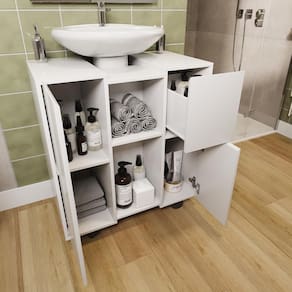 Apresentamos o Gabinete Macau, perfeito para organizar os seus pertences no banheiro. Com design compacto e funcional o Gabinete Macau é ideal para guarda seus objetos. Os rodízios facilitam o deslocamento do gabinete, permitindo assim um fácil manuseio para as limpezas. Adquira já o Gabinete Macau e transforme seu banheiro.