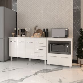 Este kit une funcionalidade e design para transformar sua cozinha! Conta com o balcão Carine de 140 cm com tampo, perfeito para organizar utensílios e preparar refeições, além do balcão Amanda para Forno e Micro-ondas, garantindo uma instalação segura e harmoniosa. Com acabamento refinado, materiais de alta qualidade e um visual moderno, esse conjunto é a escolha ideal para quem busca praticidade sem abrir mão do estilo.