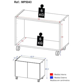 Dimensões do produto montado: Altura: 46,5cm | Largura: 62,5cm | Profundidade: 31,5cm *Você pode consultar as medidas detalhadas na imagem técnica do produto.