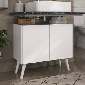 Renove o seu banheiro com estilo e praticidade com o Gabinete Armário de Banheiro 62,5cm Retrô 2 Portas Multimóveis MP5045. Fabricado em MDP com acabamento acetinado (cerca de 20% de brilho), garante durabilidade e resistência. Com suas 2 portas, você poderá organizar os seus itens de higiene pessoal. Seu design clean proporciona um visual moderno e sofisticado ao móvel. Além disso, possui pés retrô em polipropileno que oferecem estabilidade e um charme vintage ao móvel. Suporta até 6kg no seu interior e 6kg no tampo.