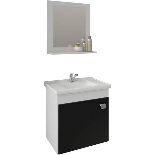 Linha: Clean Estrutura do produto: 100% MDF Acabamento: Pintura UV Produto necessita de monatgem: sim Qtde de portas: 1 Qtde de gavetas: nao tem Qtde de parteleiras: 1 na espelheira Possui Toalheiro: nao tem Porta com pistão à gás: nao Estrutura do fundo: nao tem Qde de Puxadores: 1 Material do Puxador: ABS pintado Material das Dobradiças: Metálicas Armário possui espelheira: Sim Armário Acompanha pia/lavatório: Sim Material da pia/lavatório: Mármore Sintético