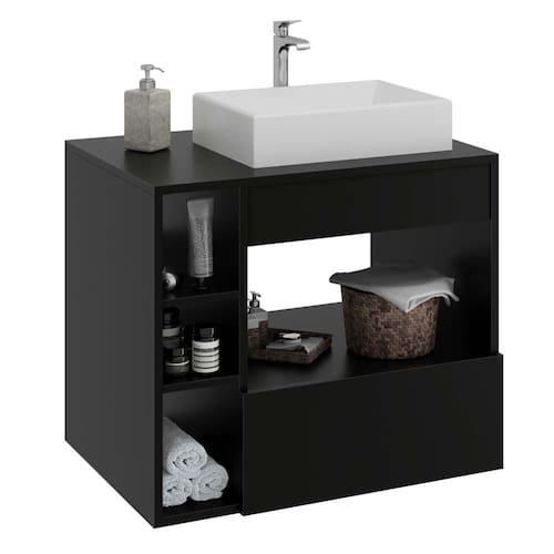 Gabinete Armário de Banheiro Paris com Cuba Preto - Preto