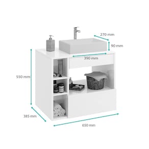 Dimensões da Cuba Altura: 90 mm Largura: 270 mm Comprimento: 390 mm Material: Mármore Sintético