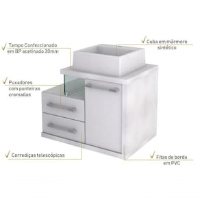Gabinete Armario P-banheiro (balcao C-cuba Q355) Legno 650 Branco Chess C-branco Chess