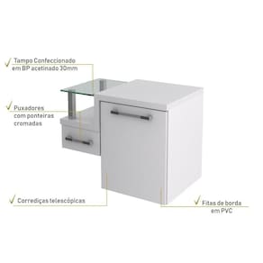 Sobre o ProdutoGabinete Legno 630Descrição do Produto:O Gabinete Legno 630 GTLG630 possui 01 porta e 01 gaveta lateral, além do tampo de apoio em vidro linha Legno combina a leveza do branco e detalhes em vidro com tons amadeirados, conferindo uma personalidade contemporânea aos móveis de design minimalista e traços retos. Produtos que aliam funcionalidade e praticidade ao seu dia a dia são características marcantes desta coleção!Itens Inclusos:1 GabineteDimensões dos Produtos:Gabinete Legno 630: 65 x 43 x 51 cmInformações Logísticas (Comp. X Prof. X Alt.) 47 x 47 x 55 cm - Peso: 19,91 KgPeso Total: 19,91 KgObservações:Não acompanha acessórios decorativos. Imagens meramente ilustrativas.Informações Técnicas / Características:- Cor do Produto: Perffect Acetinado- Cor Predominante: Branco- Marca: Compace- Modelo: GTLG630- Linha: Legno- Material: Mdp - Acabamento: Perffect Acetinado- Escala de Brilho: Fosco- Fita de Borda: Pvc c/colagem PUR- Possui Portas: 1- Tipo de Porta: Bater- Tipo da Dobradiça: Metálica- Possui Gavetas: 1- Tipo da Corrediça: Telescópica- Possui Chave: Não- Peso Máximo por Gaveta: 3 kg- Material do Puxador: Abs- Possui Prateleiras: 1- Peso Máximo por Prateleira: 05 kg- Possui Pés: Não, suspenso - Possui Vidro: Sim - Furação para Cuba / Lavatório: Não - Suporta Até (kg): 20 kg- Comprimento: 65cm- Profundidade: 43cm- Altura: 51cm - Peso Lí.: 18,45Kg- Recomendações de Uso, Manutenção e Limpeza: Para a limpeza, utilize flanela seca ou pano macio levemente umedecido em água. Utilize um pano seco em seguida. Evite com produtos químicos (solventes, thinner, acetona, etc) e não utilize nenhum tipo de esponja de aço.- Necessita de Montagem: Sim / Acompanha Manual de Montagem- Complexidade da Montagem: Média: pode ser montado por mais de uma pessoa e/ou necessite de maior conhecimento para montagem.- Garantia: 6 meses