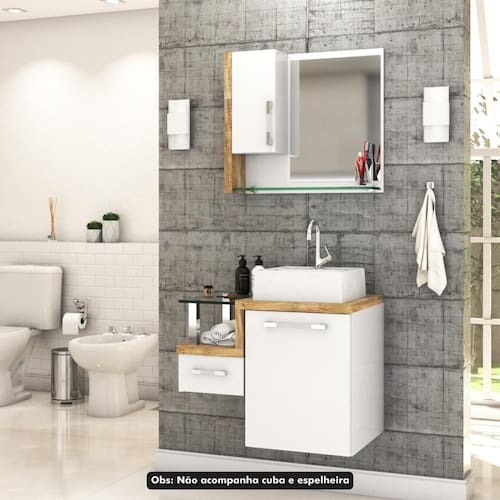 Sobre o ProdutoGabinete Legno 630Descrição do Produto:O Gabinete Legno 630 GTLG630 possui 01 porta e 01 gaveta lateral, além do tampo de apoio em vidro linha Legno combina a leveza do branco e detalhes em vidro com tons amadeirados, conferindo uma personalidade contemporânea aos móveis de design minimalista e traços retos. Produtos que aliam funcionalidade e praticidade ao seu dia a dia são características marcantes desta coleção!Itens Inclusos:1 GabineteDimensões dos Produtos:Gabinete Legno 630: 65 x 43 x 51 cmInformações Logísticas (Comp. X Prof. X Alt.) 47 x 47 x 55 cm - Peso: 19,91 KgPeso Total: 19,91 KgObservações:Não acompanha acessórios decorativos. Imagens meramente ilustrativas.Informações Técnicas / Características:- Cor do Produto: Perffect Acetinado- Cor Predominante: Branco- Marca: Compace- Modelo: GTLG630- Linha: Legno- Material: Mdp - Acabamento: Perffect Acetinado- Escala de Brilho: Fosco- Fita de Borda: Pvc c/colagem PUR- Possui Portas: 1- Tipo de Porta: Bater- Tipo da Dobradiça: Metálica- Possui Gavetas: 1- Tipo da Corrediça: Telescópica- Possui Chave: Não- Peso Máximo por Gaveta: 3 kg- Material do Puxador: Abs- Possui Prateleiras: 1- Peso Máximo por Prateleira: 05 kg- Possui Pés: Não, suspenso - Possui Vidro: Sim - Furação para Cuba / Lavatório: Não - Suporta Até (kg): 20 kg- Comprimento: 65cm- Profundidade: 43cm- Altura: 51cm - Peso Lí.: 18,45Kg- Recomendações de Uso, Manutenção e Limpeza: Para a limpeza, utilize flanela seca ou pano macio levemente umedecido em água. Utilize um pano seco em seguida. Evite com produtos químicos (solventes, thinner, acetona, etc) e não utilize nenhum tipo de esponja de aço.- Necessita de Montagem: Sim / Acompanha Manual de Montagem- Complexidade da Montagem: Média: pode ser montado por mais de uma pessoa e/ou necessite de maior conhecimento para montagem.- Garantia: 6 meses