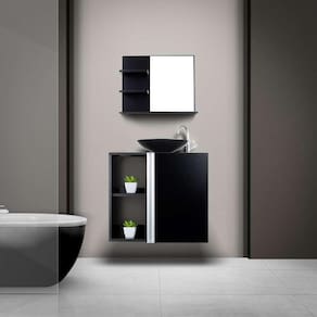 E para deixar tudo ainda mais prático, o gabinete é suspenso, o que facilita a limpeza do banheiro.