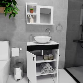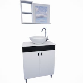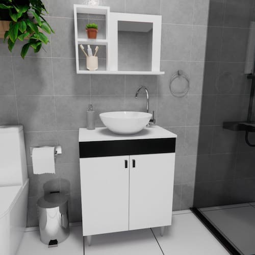Este gabinete de 60cm com cuba e espelho é a escolha perfeita para adicionar praticidade e elegância ao seu banheiro. Ele oferece amplo espaço de armazenamento para organizar itens de higiene e produtos pessoais.