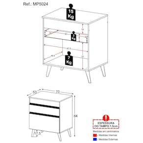 Dimensões do produto montado: Altura: 84cm | Largura: 70cm | Profundidade: 53cm (balcão com tampo) *Você pode consultar as medidas internas na imagem técnica do produto.