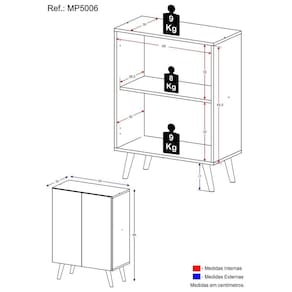 Dimensões do produto montado: Altura: 85cm | Largura: 63cm | Profundidade: 32cm *Você pode consultar as medidas internas na imagem técnica do produto.