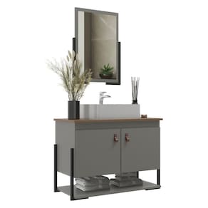 Gabinete Banheiro 60cm 2 Portas Com Cuba E Espelheira Multimóveis Cr10106 Cimento/noce Cimento/noce O Gabinete Banheiro 2 Portas com Cuba e Espelheira Multimóveis CR10106 é sinônimo de alto padrão de qualidade. Produzido em chapa de MDF de 15mm de espessura e acabamento em BP, garante durabilidade e resistência. O balcão possui 2 portas com puxadores em couro, uma prateleira e uma cuba esculpida em marmorite resinado, trazendo sofisticação ao seu banheiro. Além disso, os tubos metálicos oferecem um toque moderno ao conjunto. A espelheira conta com um espelho lapidado de 3mm, para garantir a melhor experiência visual no seu dia a dia. Conteúdo da Embalagem: 1 (um) Balcão com cuba 1 (uma) Espelheira Kit ferragem Manual de montagem