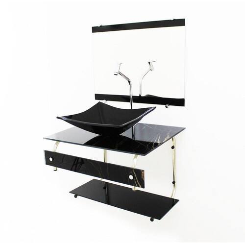Kit Gabinete 60Cm Cuba Retangular Mármore Preto + Torneira Os nossos gabinetes são indicados para projetos arrojados e de muito bom gosto, além de valorizar o seu ambiente com sofisticação em uma decoração de alto padrão, ele consegue usufruir das vantagens que o vidro proporciona e gerar uma durabilidade indiscutível. Utilizamos impressão em alta definição, garantindo com que as cores impressas não se deformem com o passar dos anos. Dados técnicos Itens inclusos: - bancada de vidro com furo para torneira e válvula click; - cuba de vidro; - espelheira espelho ; - estrutura de inox tubular; - kit parafusos completo para instalação; - prateleira de vidro da bancada; - testeira de vidro; - válvula click. Dimensões: - bancada de vidro: 60 x 45cm largura x profundidade ; - cuba de vidro: 39x32cm largura x comprimento ; - prateleira da bancada: 60 x 25cm largura x profundidade ; - espelheira espelho : 60 x 45cm largura x altura ; - testeira de vidro: 60 x 7cm largura x altura ; - válvula click: 1 1/4. Espessuras: - bancada de vidro: 8mm; - cuba de vidro: 10mm; - espelheira espelho : 3mm; - prateleira da bancada: 6mm; - testeira de vidro: 6mm. : 12 meses conforme política de troca e devoluções . Atenção: preço referente somente ao gabinete, não acompanha torneira, sifão e acessórios. Montagem: montagem e instalação não inclusa na venda ou preço do produto, elas são de inteira responsabilidade do cliente. Imagens ilustrativas. Marca: Não Informado