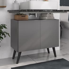 Renove o seu banheiro com estilo e praticidade com o Gabinete Armário de Banheiro 62,5cm Retrô 2 Portas Multimóveis MP5045. Fabricado em MDP com acabamento acetinado (cerca de 20% de brilho), garante durabilidade e resistência. Com suas 2 portas, você poderá organizar os seus itens de higiene pessoal. Seu design clean proporciona um visual moderno e sofisticado ao móvel. Além disso, possui pés retrô em polipropileno que oferecem estabilidade e um charme vintage ao móvel. Suporta até 6kg no seu interior e 6kg no tampo.