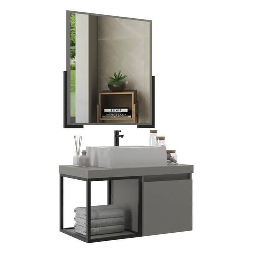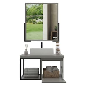 Gabinete Banheiro 70cm Com Cuba E Espelheira Multimóveis Cr10107 Cimento Cimento O Gabinete Banheiro com Cuba e Espelheira 70cm Multimóveis CR10107 é produzido em chapa de MDF com 15mm de espessura e possui um acabamento em BP que garante durabilidade e beleza. A cuba de sobrepor esculpida em marmorite resinado adiciona um toque elegante ao conjunto. Além disso, o balcão conta com 1 porta basculante com pistão a gás e uma prateleira para organizar seus itens pessoais. A espelheira apresenta um espelho lapidado de 3mm, e os tubos metálicos presentes neste conjunto conferem modernidade ao banheiro. Conteúdo da Embalagem: 1 (um) Balcão com cuba 1 (uma) Espelheira Kit ferragem Manual de montagem