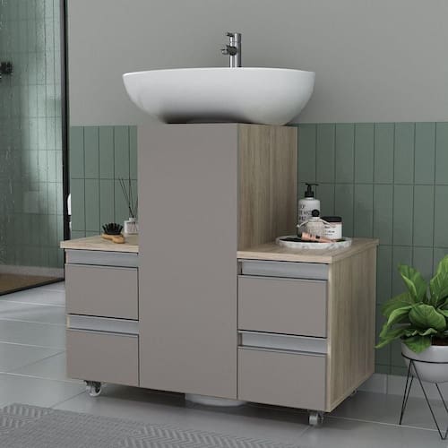 Gabinete Banheiro Coluna Para Encaixe Madeirado Cinza - Blush