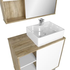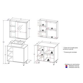 Conteúdo da Embalagem: 1 (um) Balcão com cuba 1 (uma) Espelheira com porta Manual de Montagem Kit Ferragem
