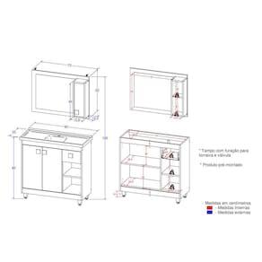 Conteúdo da Embalagem: 1 (um) Balcão com cuba 1 (uma) Espelheira com porta Manual de Montagem Kit Ferragem