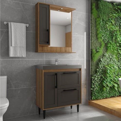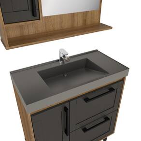 Gabinete Banheiro com Cuba e Espelheira 80cm Multimóveis CR10064 Mad/Grafite - Marrom