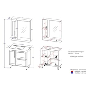 O Gabinete Banheiro com Cuba e Espelheira 80cm Multimóveis CR10064 é produzido em MDP 15mm com acabamento semibrilho, que garante maior durabilidade e facilidade de limpeza. A espelheira possui 1 porta com prateleira interna (suporta até 3kg) e luminária na parte superior. O balcão com cuba esculpida em marmorite sintético (já vai com furação para instalação da torneira) proporciona mais requinte e beleza ao seu banheiro. Com 2 portas (puxadores em alumínio com ponteiras em ABS cromado) e 1 gaveta possui amplo espaço interno para organização de toalhas, itens pessoais e de higiene. Os pés com regulagem de altura permitem um perfeito nivelamento do móvel.