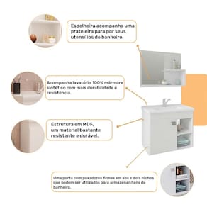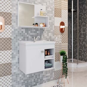 O gabinete para banheiro Bia é uma excelente escolha para quem deseja elegância e praticidade em um único produto. Feito em MDF, este gabinete oferece durabilidade e resistência para suportar o dia a dia no banheiro. Além disso, o gabinete Bia acompanha uma pia e também conta com uma espelheira, garantindo a praticidade que você precisa em seu banheiro. A Pia é produzida em um material resistente e fácil de limpar, e a espelheira conta com um design moderno e elegante, que combina perfeitamente com o gabinete. Com o gabinete para banheiro Bia, você pode ter certeza que está adquirindo um produto de qualidade , que vai deixar seu banheiro ainda mais bonito e funcional. Invista no seu conforto e na beleza do seu banheiro, adquirindo agora mesmo o gabinete com espelheira Bia.