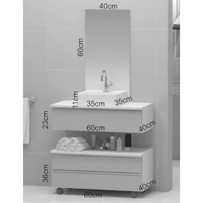 -GABINETE PARTE CIMA com 60cm comprimento / 40cm largura / 23cm altura. Tem puxador de alumínio na porta.