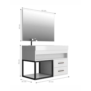 O Gabinete Banheiro com Espelheira 80cm Multimóveis é produzido em MDF (15mm) com acabamento em BP que garante maior durabilidade e resistência, além de facilitar a limpeza. O balcão com cuba esculpida em marmorite resinado (tampo já vai com furação para instalação da torneira) possui 2 gavetas com corrediças telescópicas, puxadores em alumínio e amplo espaço para organização de toalhas, itens pessoais e de higiene. O detalhe aramado deixa o móvel moderno e proporciona mais requinte ao seu banheiro. A espelheira possui espelho 3mm de vidro (o que evita que a imagem fique distorcida) e lapidado, ou seja, passa por um processo para que as bordas não fiquem cortantes, o que garante maior segurança. Uma opção prática para deixar seu banheiro bonito e organizado.