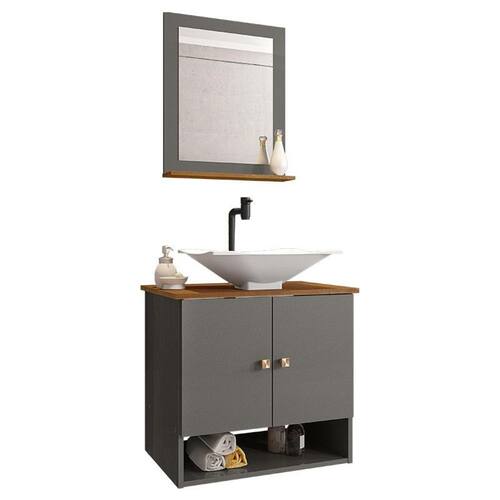 Gabinete Banheiro Deli Concava Bco Torneira Valv Click Black - Cinza