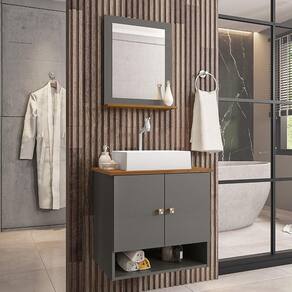 Material da espelheira: MDP de 12 mm no painel e 15 mm na prateleira com espelho de 03 mm de espessura;