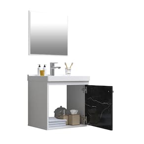 Gabinete banheiro em mdf com pia cuba - veneto Cor: preto Conjunto gabinete veneto riverzza O gabinete suspenso para banheiro é desenvolvido com estrutura em mdf e a cuba em bmc, garantindo mais durabilidade e resistência ao produto. Medida do gabinete: l x a x c 40cm x 41cm x 31,5cm Peso gabinete: 5,6 kg Peso suportado: 10 kg Medida da cuba: l x a x c 40cm x 2,5cm x 31,5cm Furo da torneira: 2,7cm Furo do ralo/válvula: 3,2cm Medida da embalagem produto desmontado : l x a x c 38,3cm x 21,2cm x 46cm Peso da embalagem: 6,15 kg Itens inclusos: 1 gabinete de banheiro, 1 pia e 1 kit de montagem. Não acompanha espelho. Acompanha cuba: sim cor: branca Material da cuba: bmc Estilo: moderno Furação para cuba e torneira: sim Material da porta: mdf Material do puxador da porta: plástico Material principal: mdf Possui espelho: não Possui gabinete: sim Possui gaveta: não Possui iluminação: não Possui pés: não Possui portas: 01 Possui prateleiras: não Possui rodízio: não Kit montagem: sim apenas para montagem, não acompanha parafusos para fixação Necessita montagem: sim Complexidade da montagem: baixa pode ser montado por uma pessoa sozinha Origem do produto: nacional do fornecedor: 03 meses Recomendações de uso, manutenção e limpeza: limpar com pano levemente umedecido Tipo de dobradiça/corrediça da porta: metálica Tipo de porta: bater Tipo de puxador da porta: externo Marca: Não Informado Ean: 7898717160840